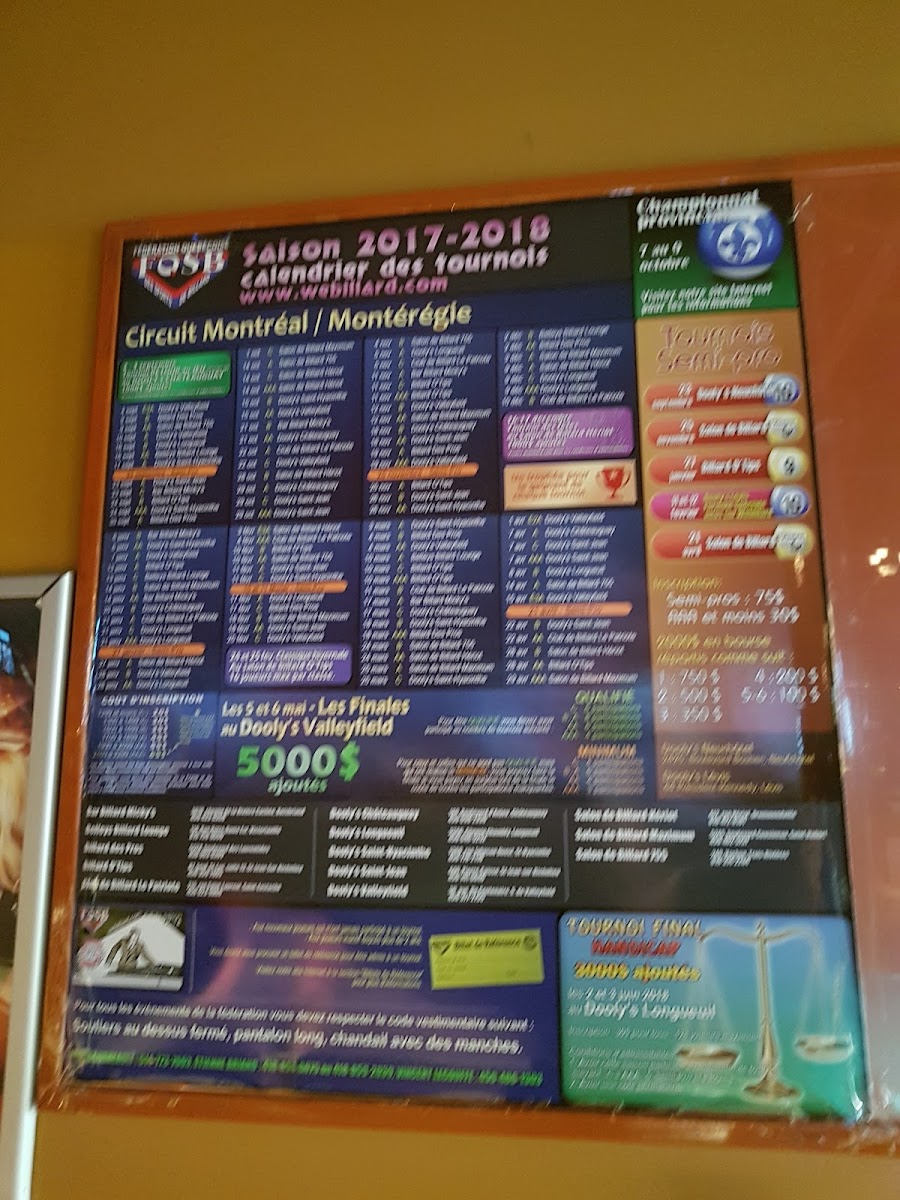 The menu at Dooly's Valleyfield features a delightful range of food and drink options that perfectly complement your game. From savory snacks to hearty meals, there's something for everyone. Enjoy quick bites that fuel your pool sessions or indulge in something more decadent as you unwind after a match.